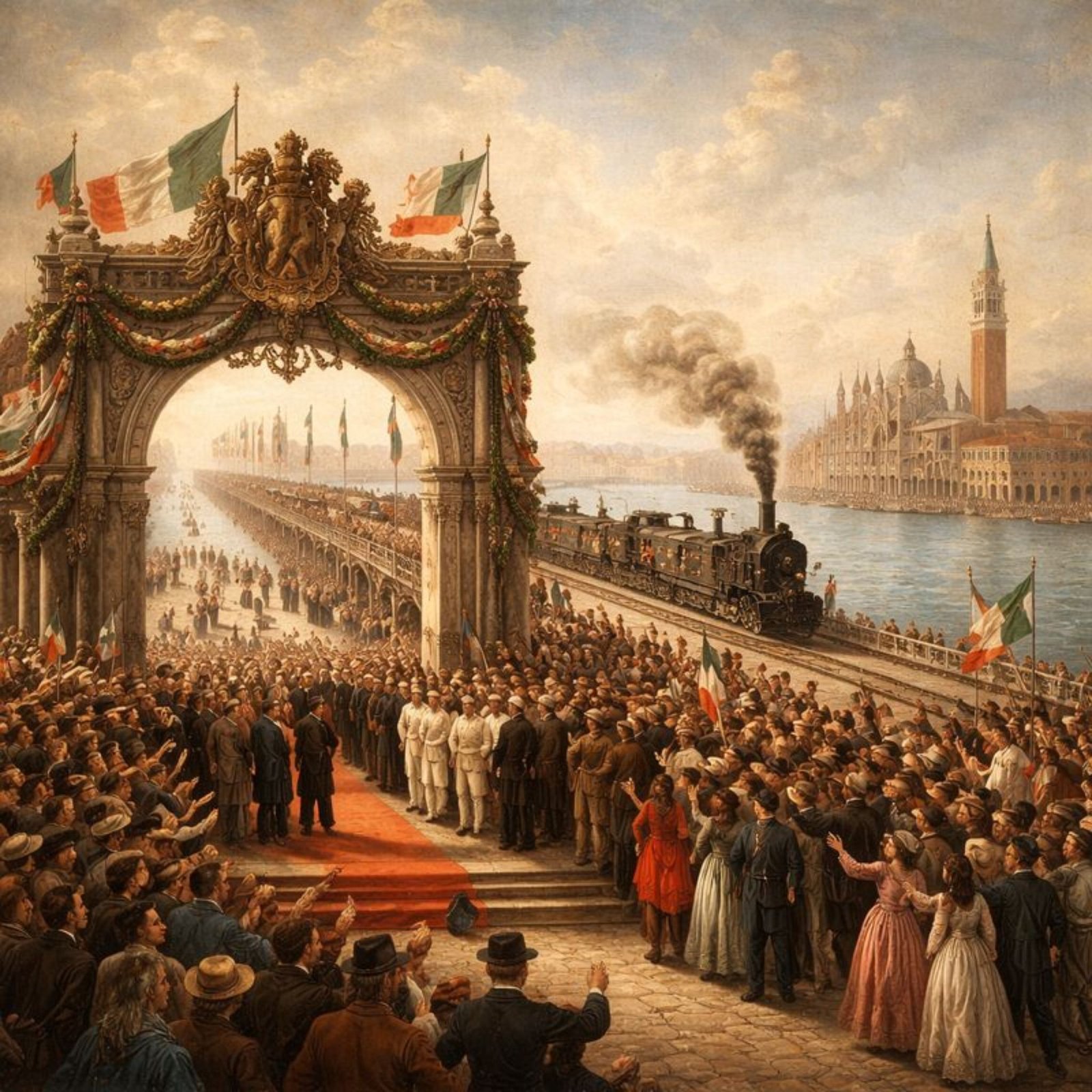 The rapid spread of rail transport across Europe was transforming economies and societies. Railways reduced distances, accelerated commerce, and reshaped political and economic relations between regions. Cities connected to railway networks flourished, while those excluded faced stagnation. In this context, the absence of a direct rail link threatened Venice’s relevance within the evolving economic geography of northern Italy and beyond.