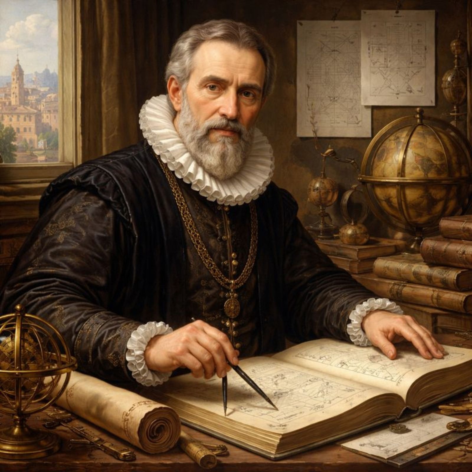 Born into a noble family in Pesaro, within the cultural sphere of the Duchy of Urbino, Guidobaldo del Monte embodied a distinctive model of the Renaissance scholar. His social status was not incidental to his intellectual life: it shaped his access to education, books, instruments, and political networks. Unlike many university professors bound to institutional traditions, del Monte operated at the intersection of courtly culture, engineering practice, and mathematical theory. This position allowed him to function as both a learned aristocrat and a scientific mediator between ancient knowledge and emerging modern science.