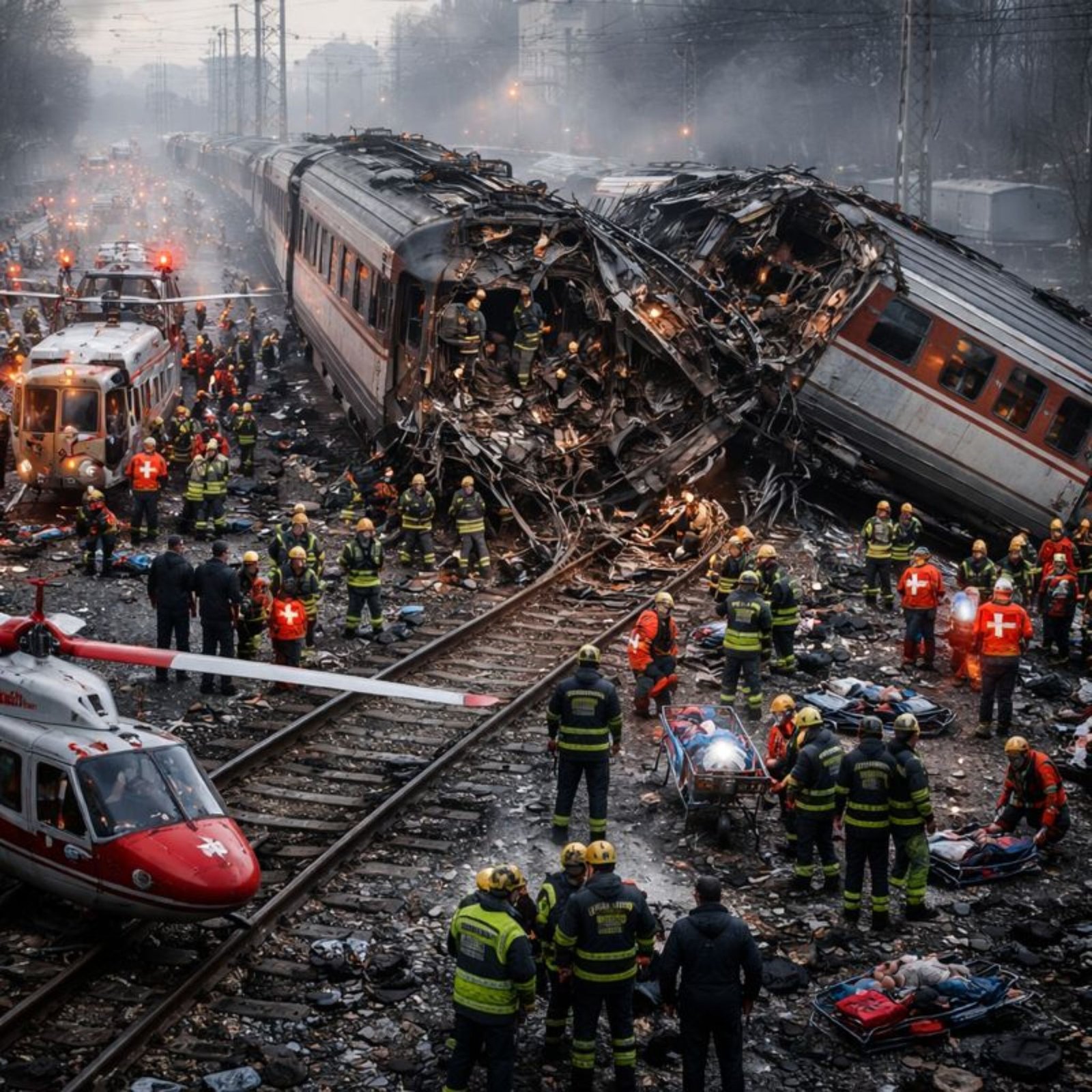 The accident took place in the early hours of the day, a time when regional trains were crowded with commuters traveling to work, school, or medical appointments. A passenger train running on a heavily used regional line collided with another train that was occupying the track. The impact was devastating. The leading carriages of the passenger train were crushed and severely deformed, leaving little chance of survival for those seated in the front sections. In a matter of seconds, an ordinary morning journey turned into a scene of destruction and despair.